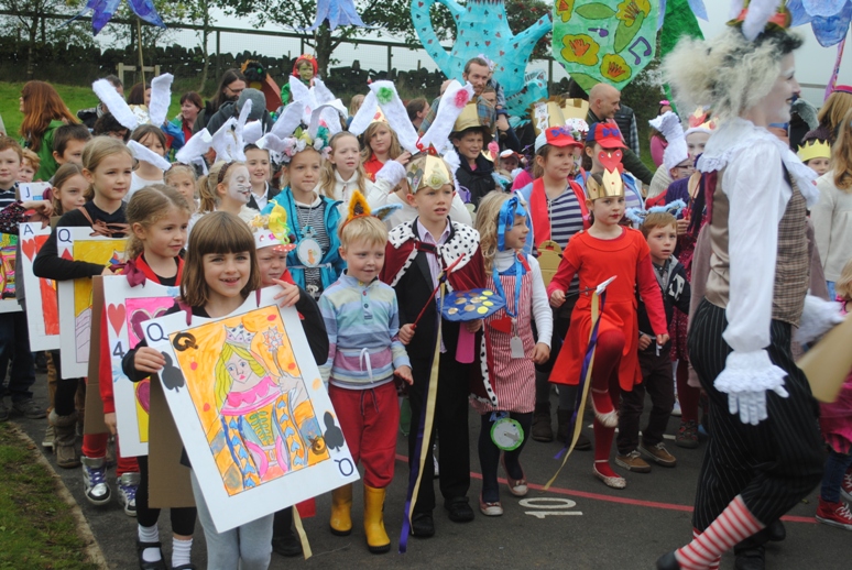 Ursula Holden Gill and Sonia from Canopy Arts will also have helped the children develop the drama and action for the day. The Card Guards will have been drilled to perfection, and everyone will have warmed up for Wonderland and brushed up on their fun procession poses. Composer Katie Chatburn will have helped the children compose the music that they would then perform on the day at the Mad Hatters Tea Party.