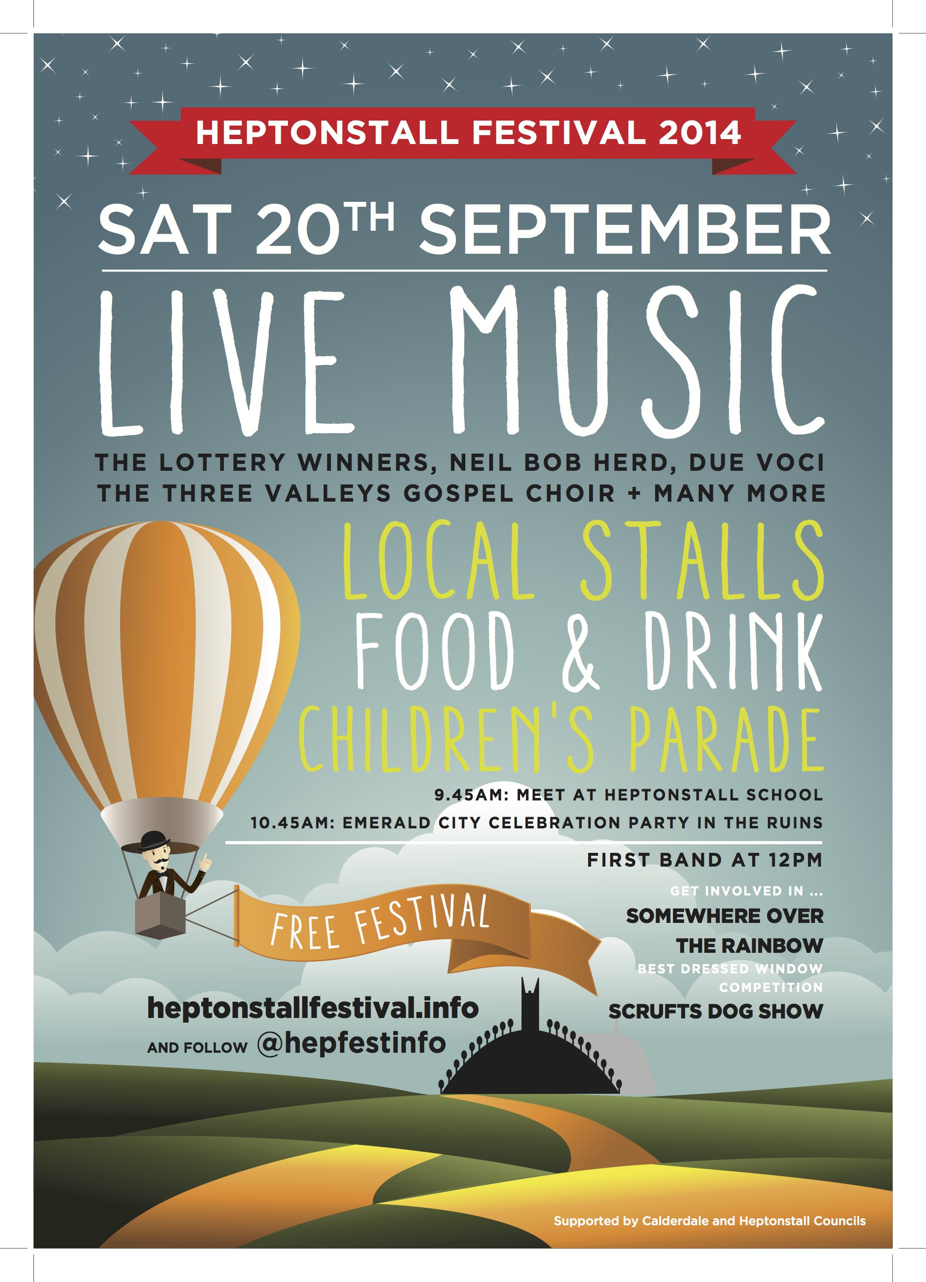This year’s Heptonstall Festival will take place on Saturday 20 September and will build on the tremendous success that was the 2013 festival. There will again be two stages (on Weaver Square and in the old church ruins) along with the fun-filled morning children’s parade and an evening’s classical concert. This year’s theme is The Wizard of Oz, so dig out those red shoes and remember – there’s no place like home! Continue reading