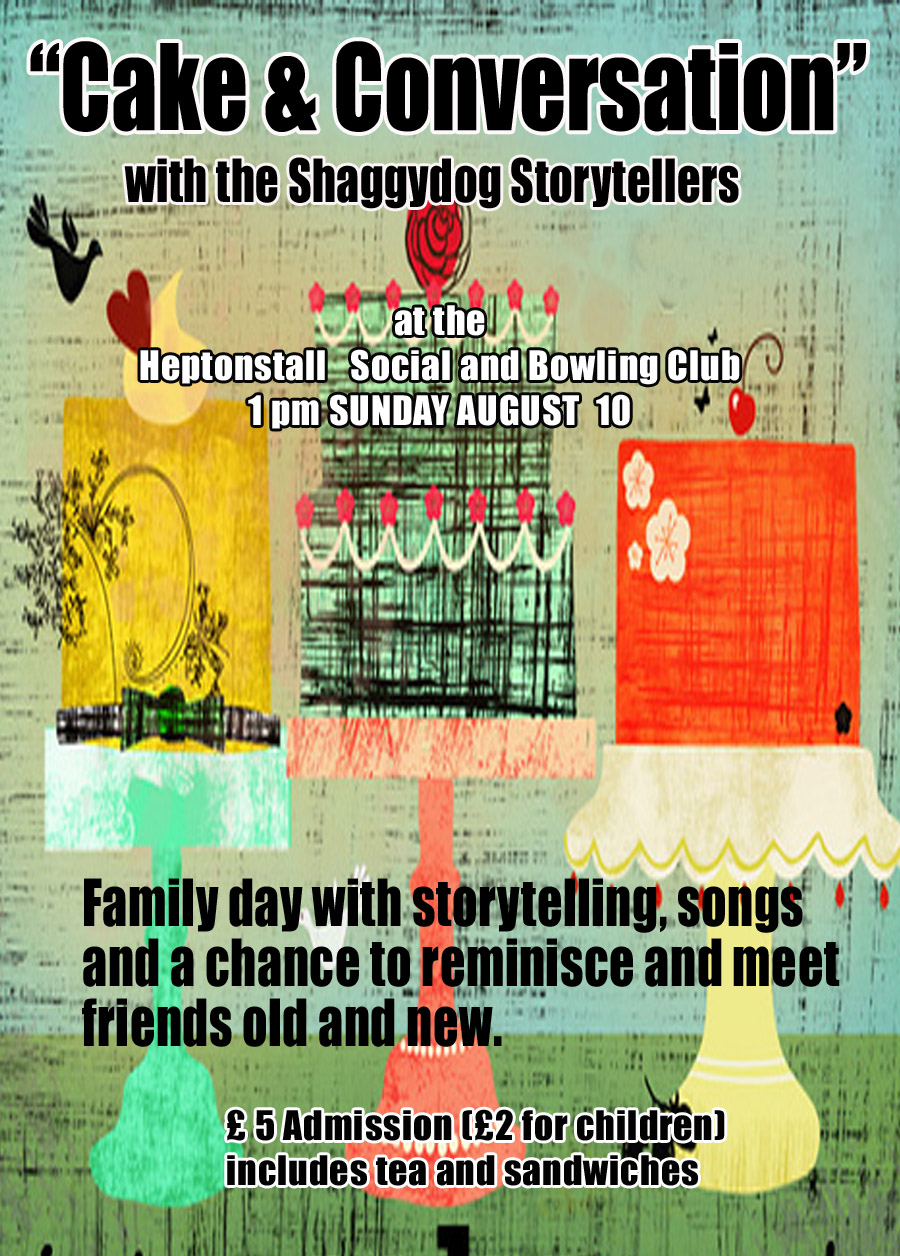 Cake & Conversation, with the Shaggy Dog Storytellers – Sunday 10th August: 1 – 4pm at the Social & Bowling Club.