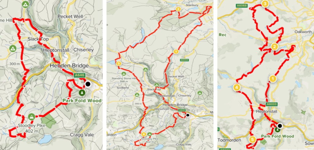 All three of the races’ head West from Race HQ through Hebden Bridge and towards Slack Top along the Rochdale Canal Path. At the top of Colden Road, at the 5km point, the routes separate with the 50km/75km courses heading East along the Calder Aire Link towards Penistone Hill Country Park and the 25km route continuing East to loop around Stoodley Pike before returning to Race HQ.